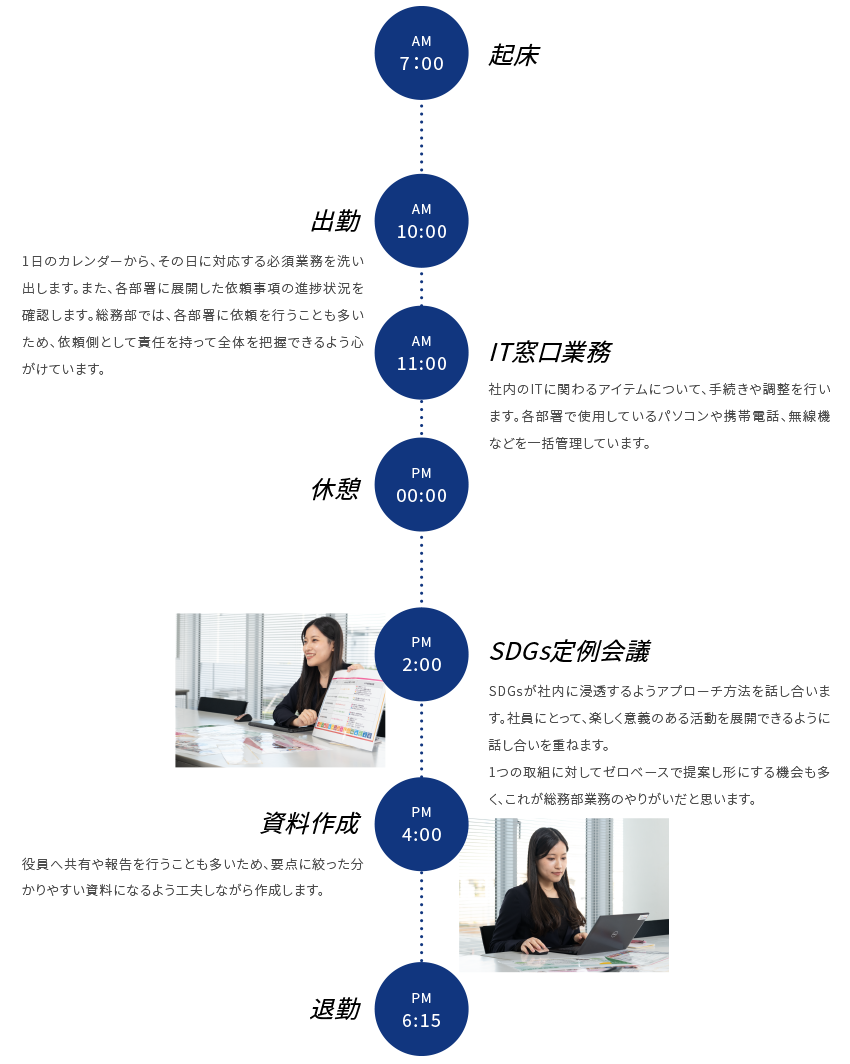 また最近では、各部署のメンバーに企画立案をしていただき、そのフォローアップ等も行っています。メンバーの意見はなるべくアレンジを加えず、意思を大切にして進めたいですが、会社として目的に沿った有意義な取り組みにするためには全てを自由に行うことはできず、適宜相談をしながら連携を図って進めます。そんな試行錯誤を経て、各部署のメンバーが企画立案した取り組みが実現した時に、やりがいを感じます。